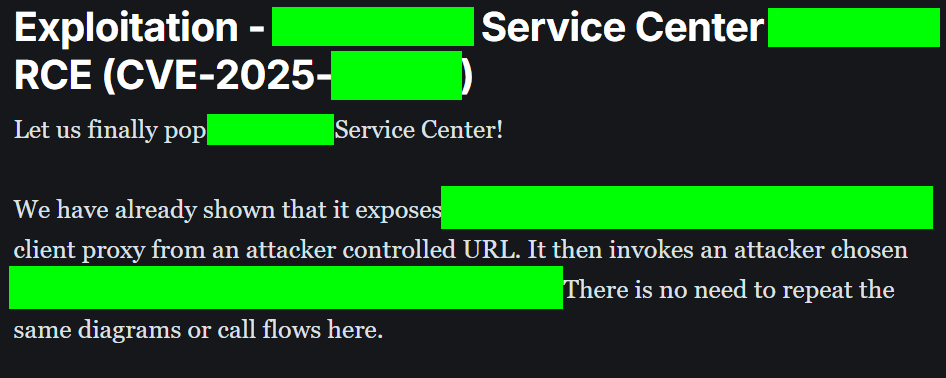 As we pulled in neighbouring images following the naming pattern, the story filled out. We found architectural diagrams, code snippets, screenshots of server-side template files and call-flow graphics. We didn’t need the full exploit to understand the risk. We knew the product family, the legacy .NET exploitation shape, and, in general, the risk posed by information of this nature.